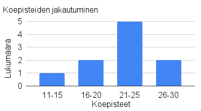 Vastaus: Koepisteiden mediaani on 23,5 pistettä.